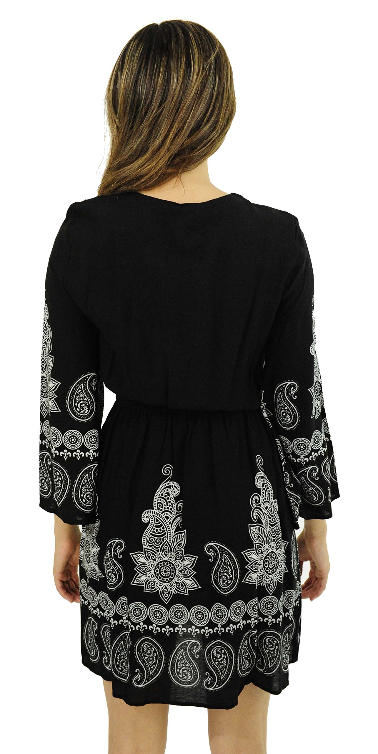 - LOOK SIMPLY STYLISH: You’ll love the embroidered look eye-catching paisley boho print that contrasts beautifully with the bold colors. The women swim cover up also comes with a lovely lace up neckline and ¾ bell sleeves to make for unmistakably stylish resort wear