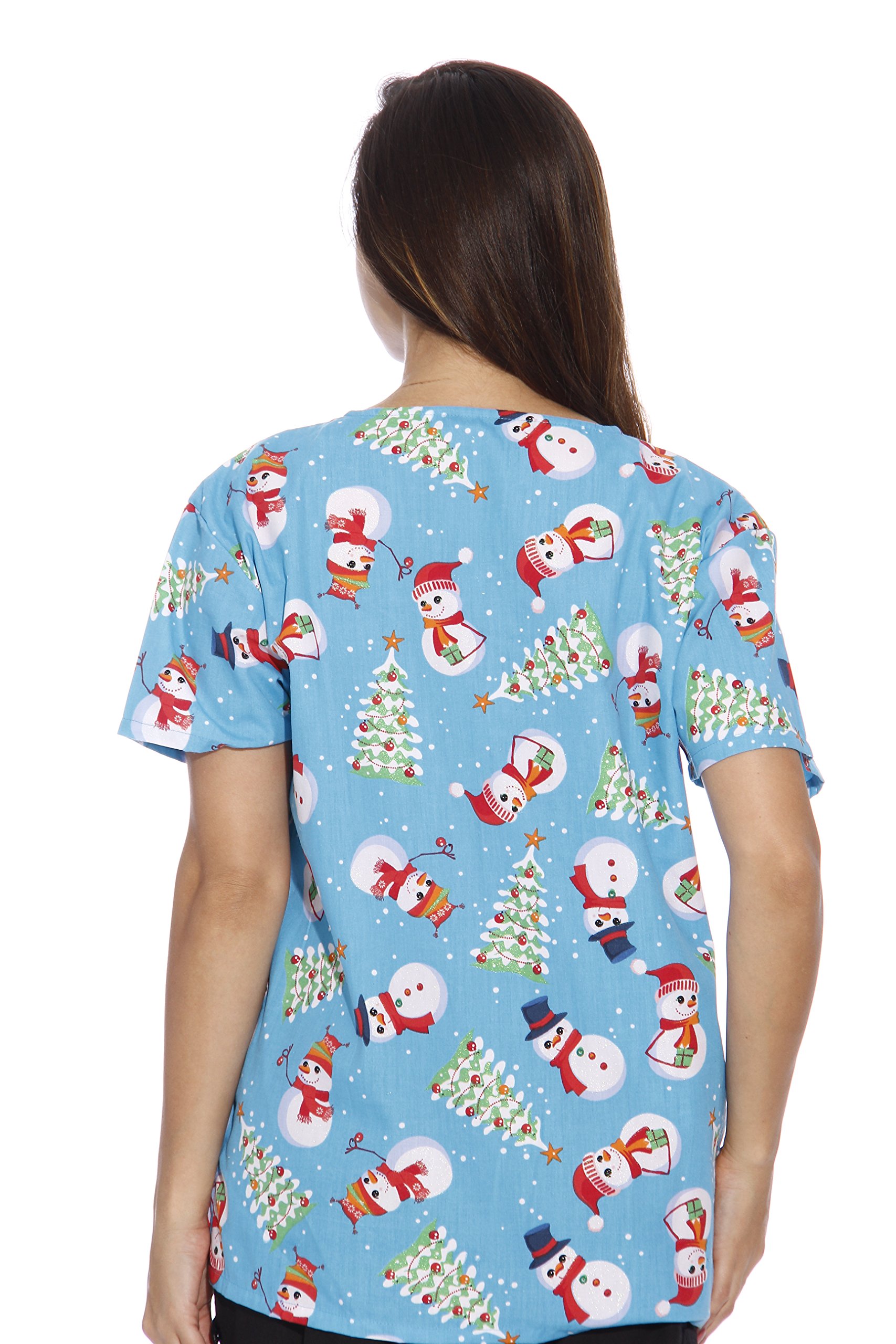 - SPARK A SMILE: Make that doctor’s office a little sunnier with these festive scrub tops for women. Whether it’s Christmas, Halloween, 4th of July, or Thanksgiving, you can pick between fun prints and vibrant colors to crown any of the holidays.
